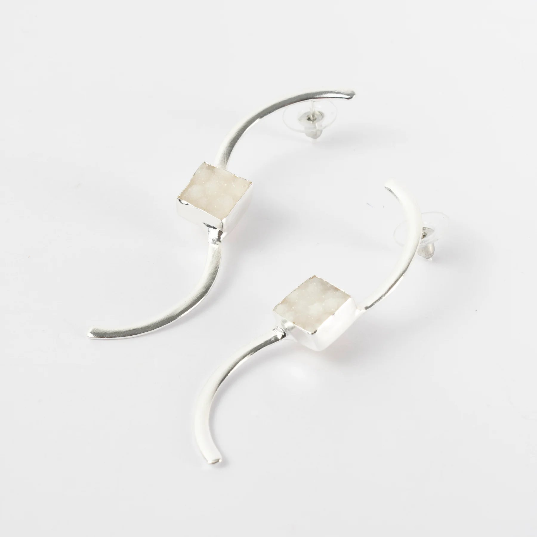 Pendientes de estilo moderno con una encantadora línea curva y una deslumbrante piedra cuadrada en el centro. Agrega un toque de elegancia y sofisticación a tu look. ¡Lúcelos con confianza!