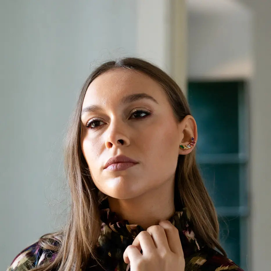 Los Pendientes Terems de ACUS son piezas únicas que siguen una silueta curva, adornadas con brillantes circonitas a lo largo de su elegante recorrido. Descubre la fusión perfecta de estilo y sofisticación.