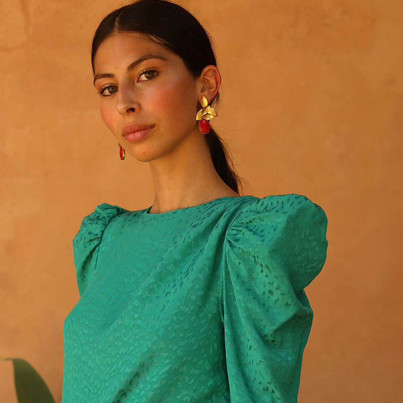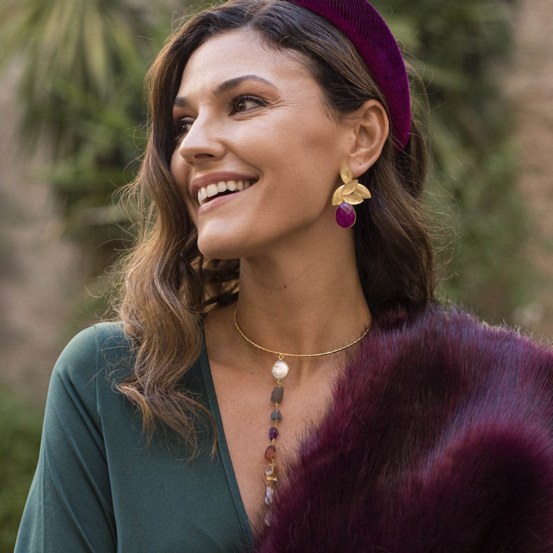 Cinco encantadoras formas de hojas se unen para crear estos pendientes únicos adornados con una piedra en la parte inferior. Una fusión de elegancia natural y diseño distintivo que realza tu estilo con gracia. Añade un toque encantador a tus looks con estos pendientes perfectos para cualquier ocasión.