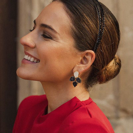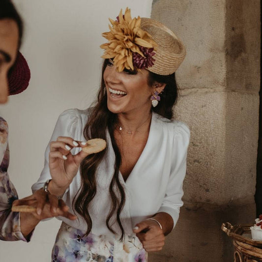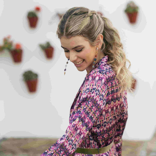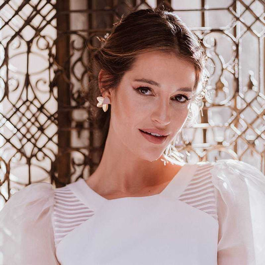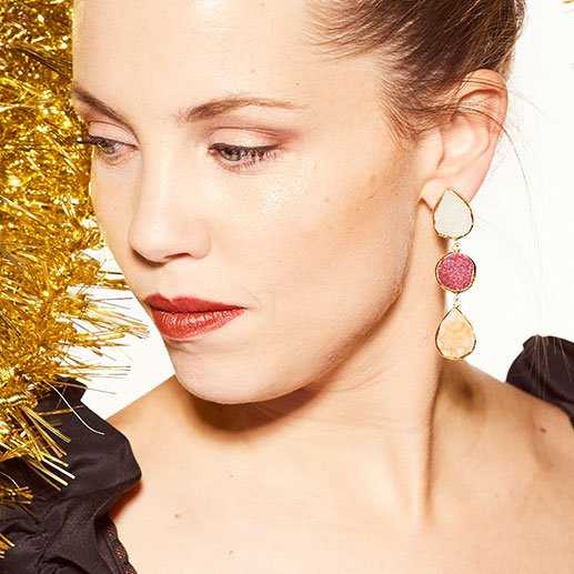 Pendientes Mademoiselle Blanco. Burdeos rosado y Naranja