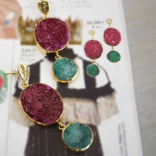 Pendientes Rupia Desmontable Verde y Fucsia mo