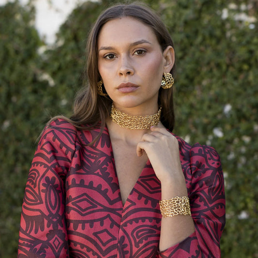 Conjunto Choker Vid + Pendientes Aros Celosía + Brazalete Celosía
