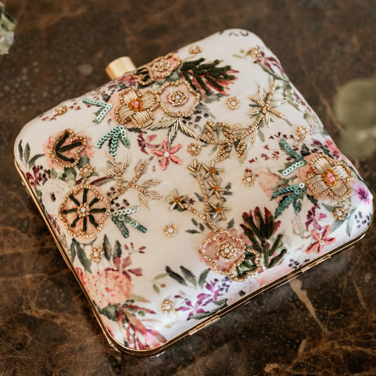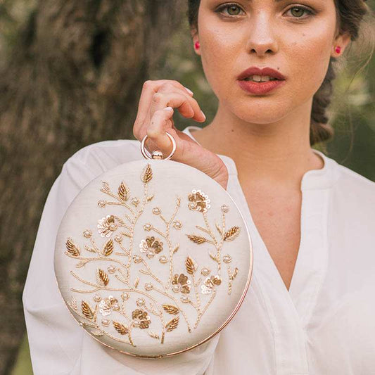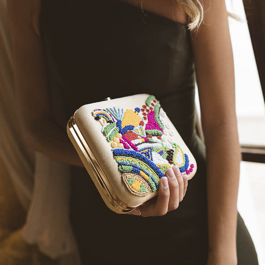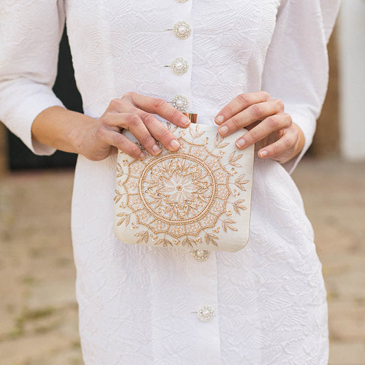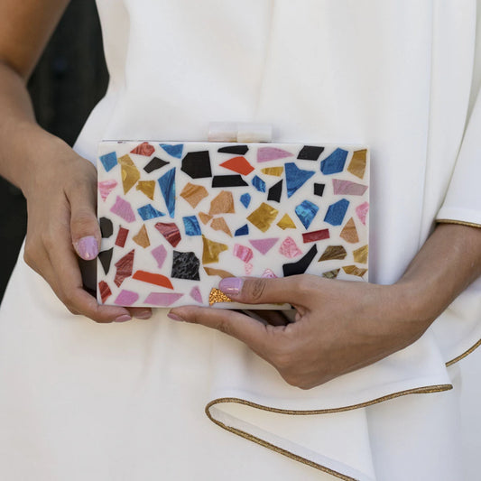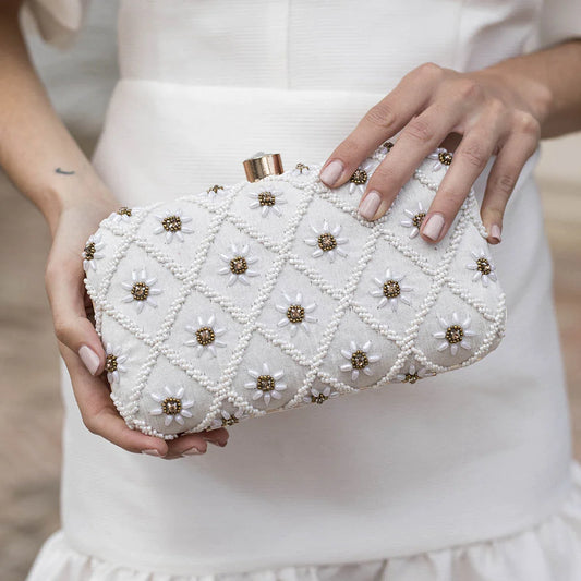 Bolso Cofre Mosaico Miran Blanco Nácar