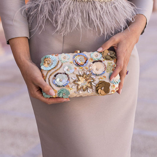 Bolso Naitra Flores 3D Biege Y Azul Agua
