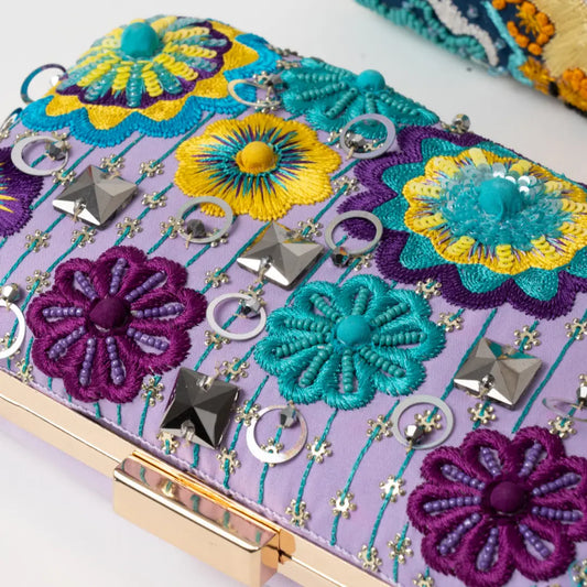 Clutch Ovalado Aguas Plata Morado (con imperfecciones)