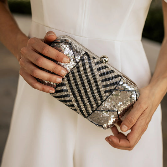 Bolso Lineé Plata y Azul Oscuro