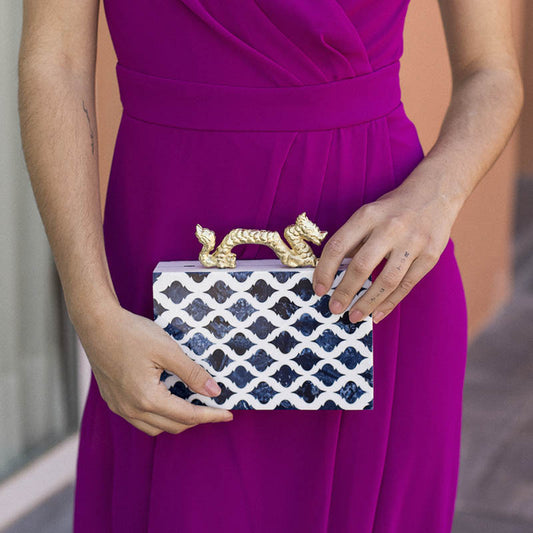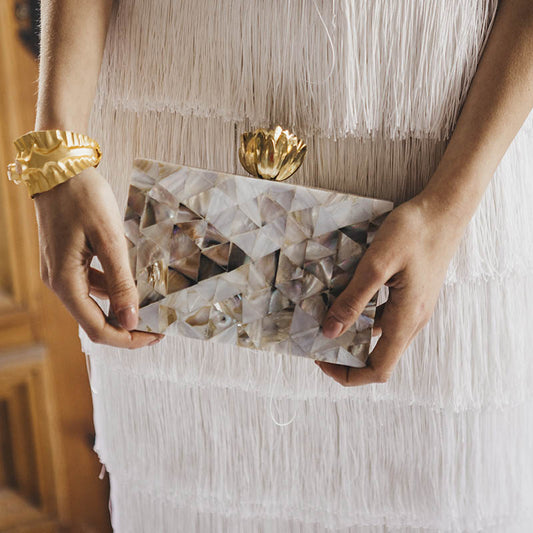 Bolso Cofre Mosaico Miran Blanco Nácar