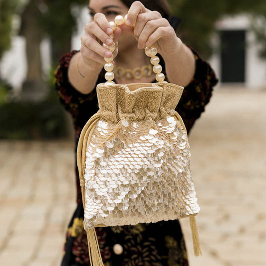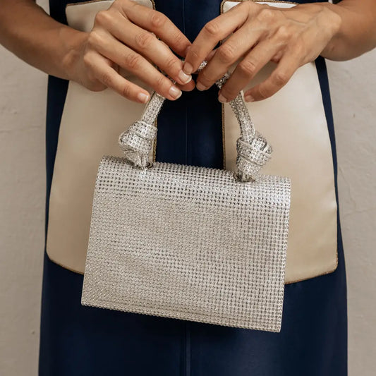 Clutch Deluxe Gemma Plata Shine y Perlas