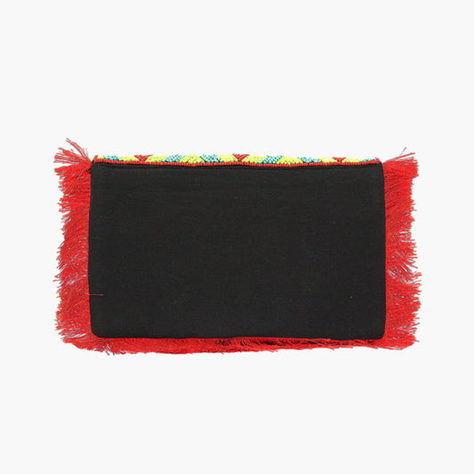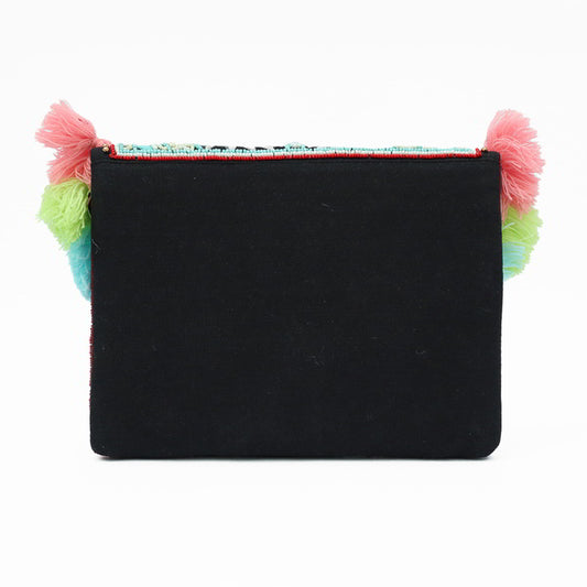 Bolso Rígido Borlas Bicolor Plateado Blanco y Negro