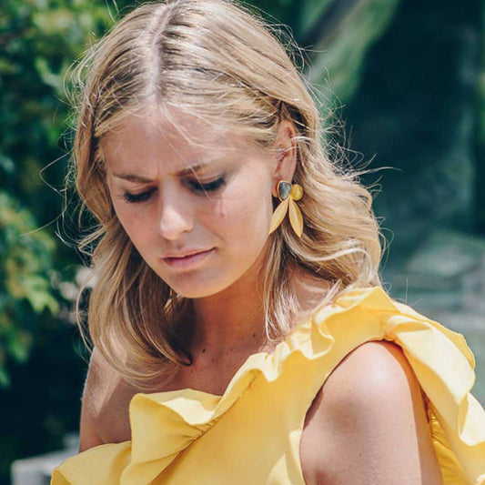 Pendientes Narciso Amarillo y Piedra Lunar