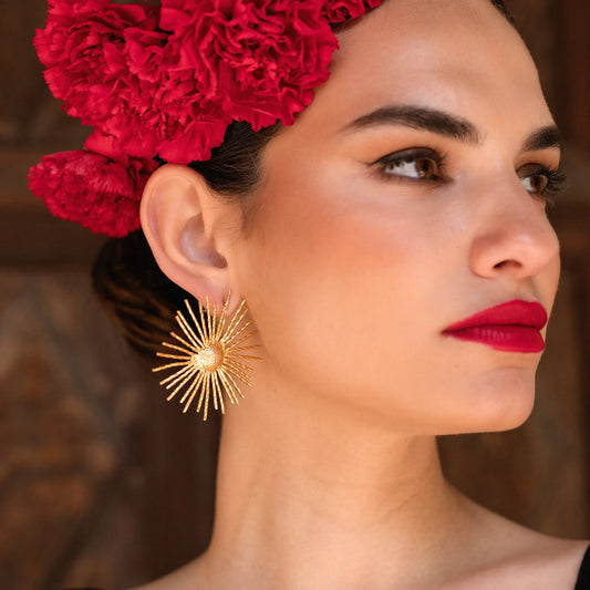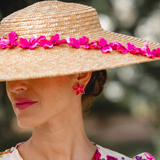 Pendientes Cadenza Flor Flecos Rojo (desmontables)