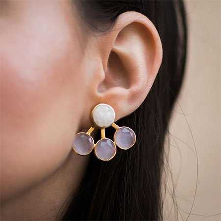 Pendientes Centella Desmontables Piedra Lunar y Morado