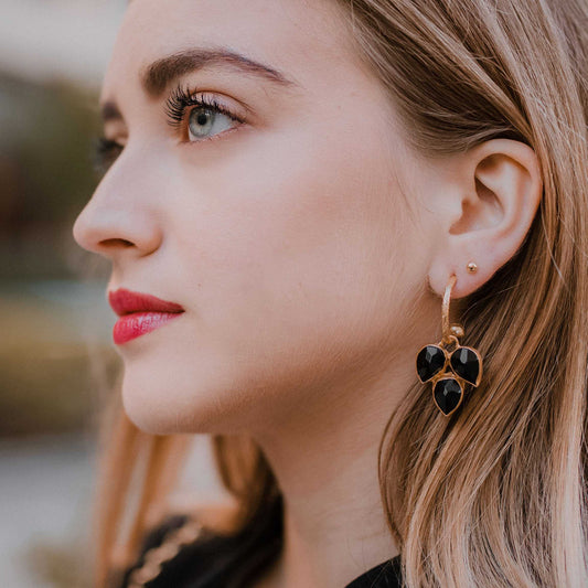 Pendientes Cadenza Flor Flecos Negro (desmontables)