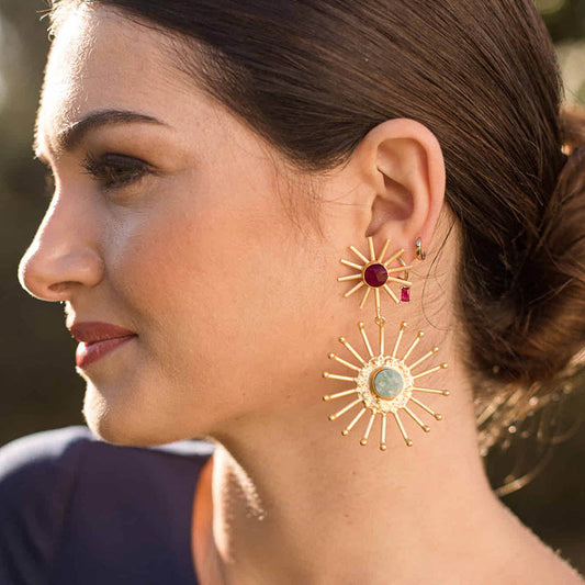 Pendientes Grimsby Rubí Oscuro y Amazonita