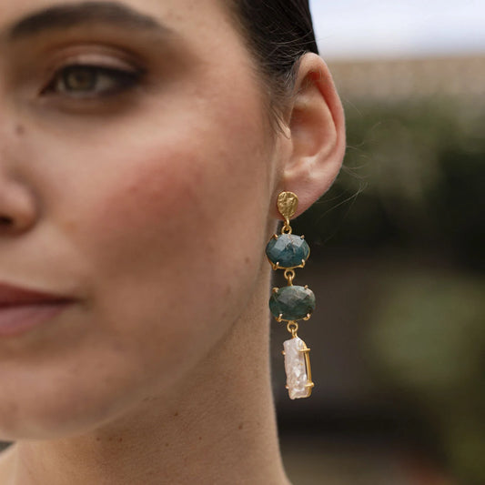Pendientes Abril Deluxe Piedra Lunar y Labradorita