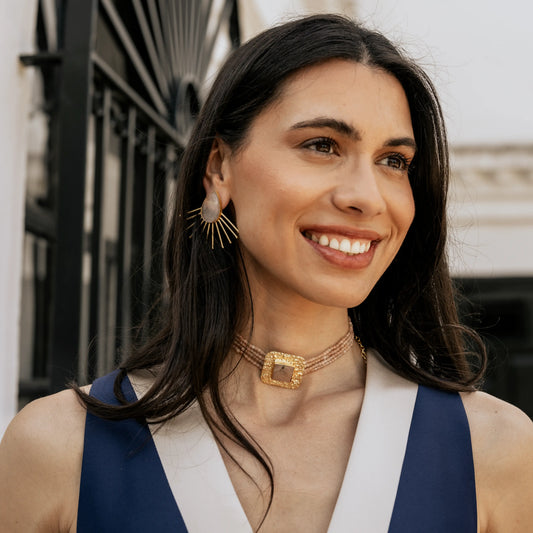 Pendientes Judit Iconic Plata Rosa y Piedra Lunar