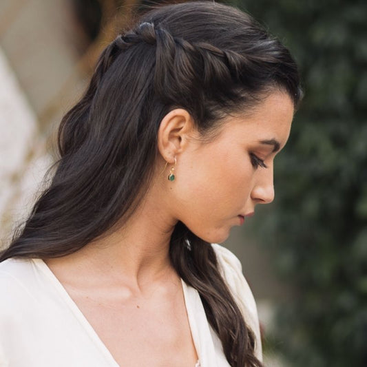 Pendientes Aros Esfera Piedra Lunar y Verdes