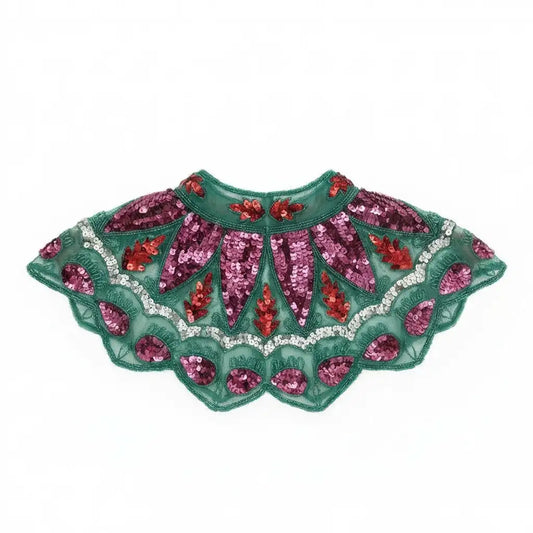 Cuello Joya Zardozi Verde, Fucsia y Rojo