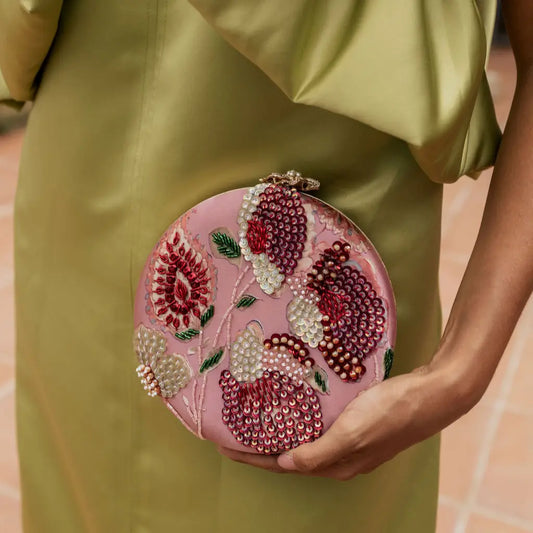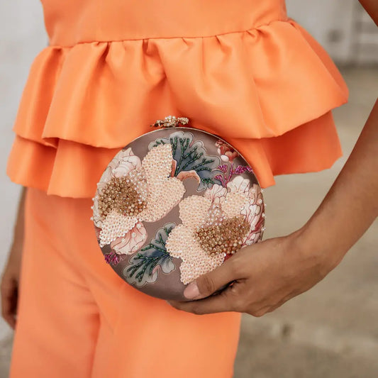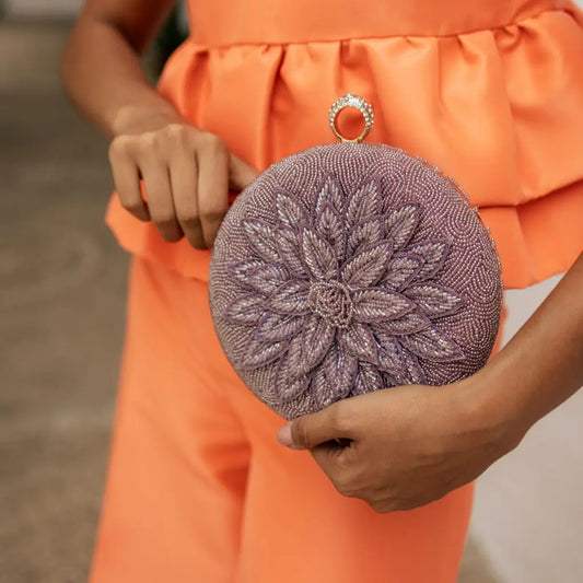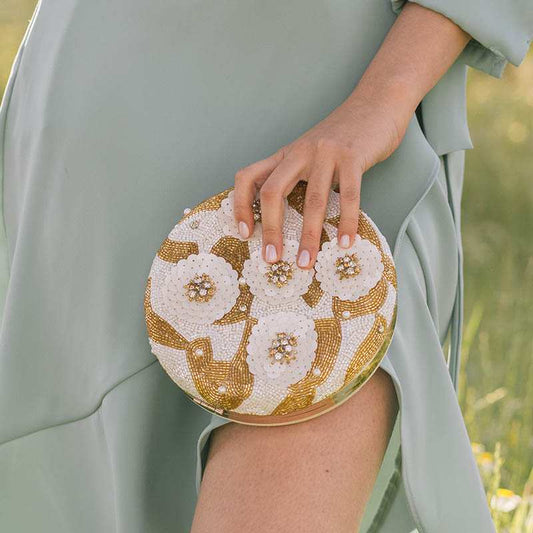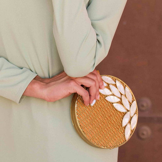 Clutch Deluxe Circular Luminia Plata Nácar Shine