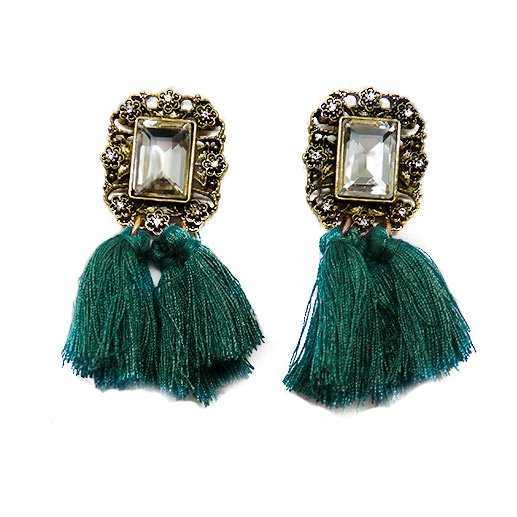 Bisutería Pendientes Barrocos Flecos Verde
