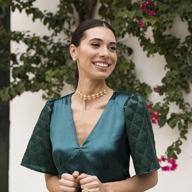 Las piedras del choker Nigel capturan la luz de manera encantadora, agregando un brillo sutil y una sensación de lujo a tu estilo. Este accesorio versátil complementará tanto atuendos formales como informales, convirtiéndose en un elemento imprescindible en tu colección de joyas.
