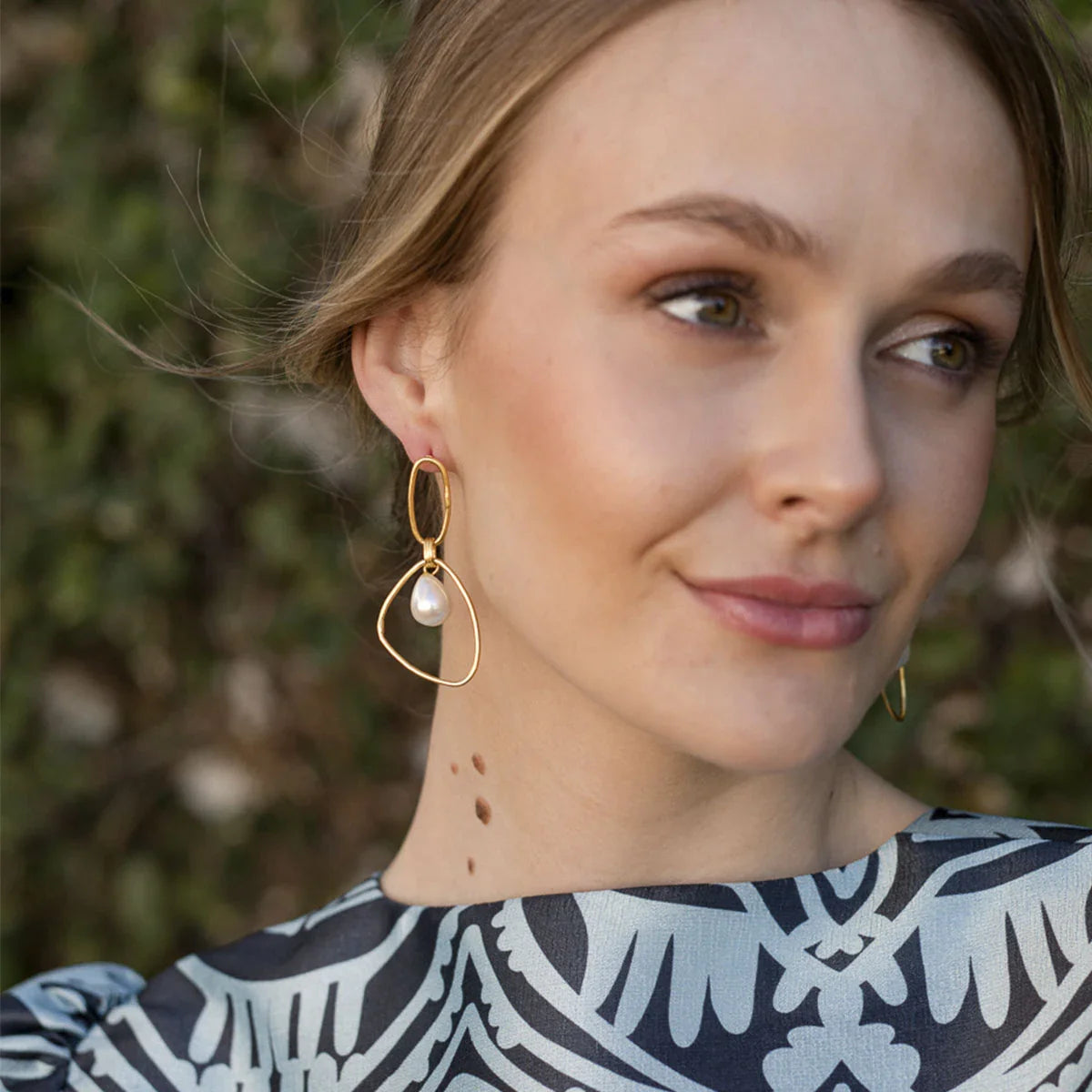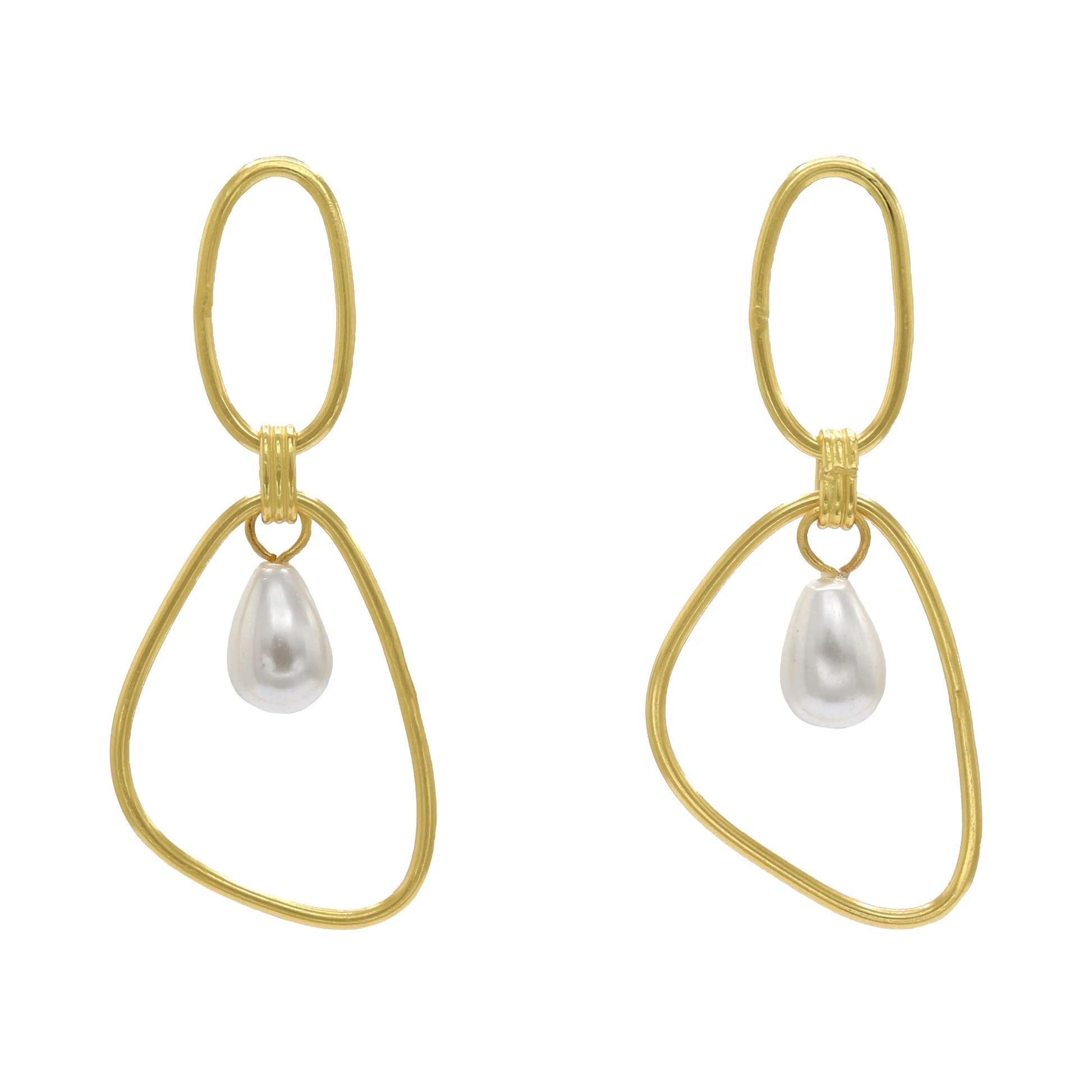 Estos pendientes presentan un diseño moderno y elegante, formados por una silueta ovalada de la que cuelga otra silueta en la parte inferior. En el centro de la silueta inferior, se encuentra una piedra que aporta un toque de sofisticación y brillo al conjunto. La combinación de las dos siluetas crea un efecto visual atractivo, mientras que el movimiento de la piedra colgante añade dinamismo al diseño. Perfectos para quienes buscan un accesorio distintivo, estos pendientes son ideales para realzar cualquier atuendo, ya sea casual o formal, aportando un aire de elegancia y estilo.