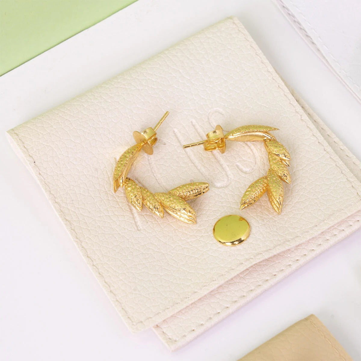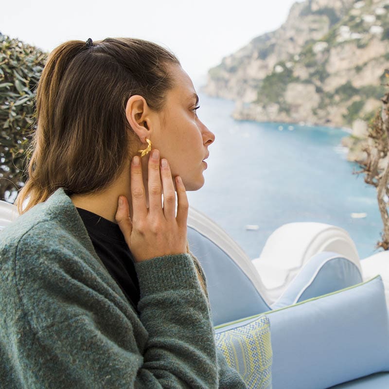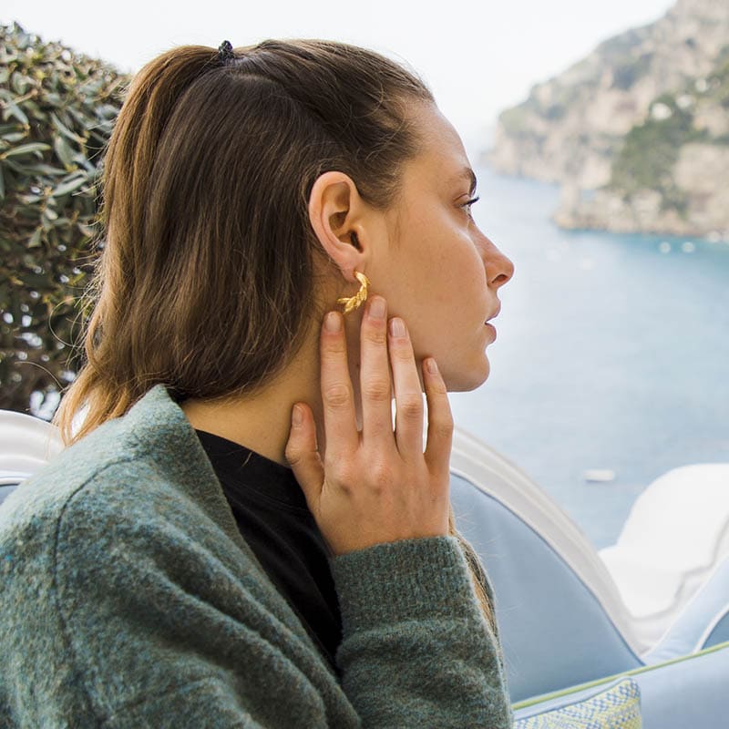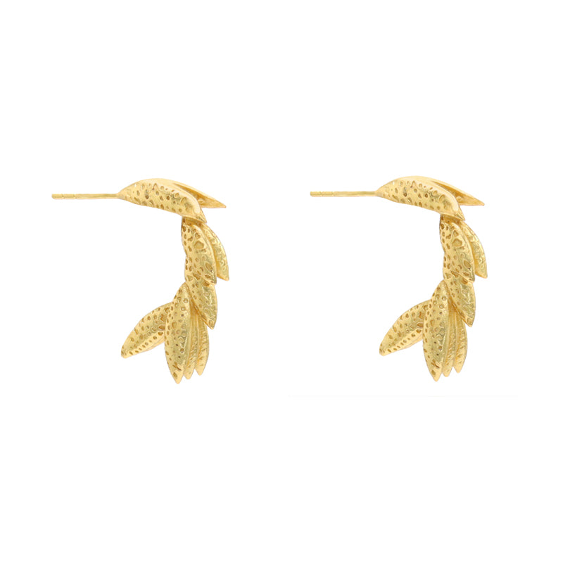 Pendientes formados por pequeñas hojas en forma curvada que recuerdan a un racimo de bananas. Diseño original y moderno. Perfectos para las amantes de los aros. ¡Serán los más originales de tu joyero! Y su textura te encantará.