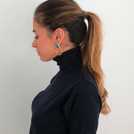 Originales pendientes de piedra en forma de lágrima y aro frontal. En este modelo hemos reinventado los clásicos aros, dándole la vuelta y colocándolo de una manera frontal. El resultado es excelente, una pieza delicada, elegante. Un clásico ya en ACUS que no te puede faltar.