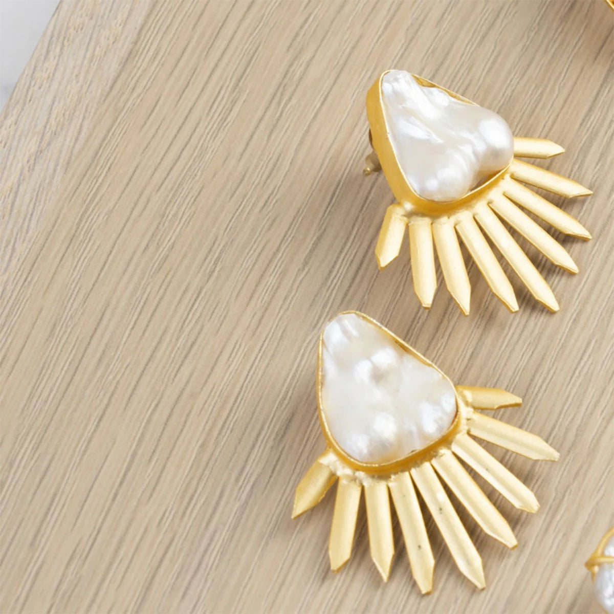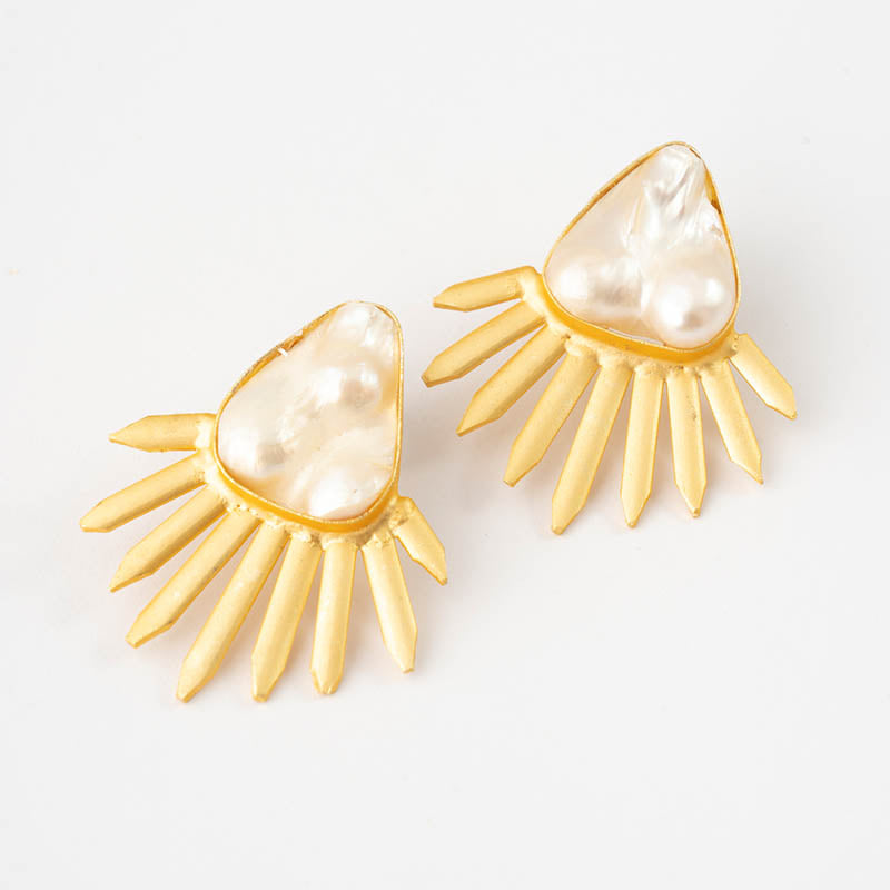 Imagina la elegancia sutil de los Pendientes formados por una piedra preciosa y un abanico de base justo debajo. Estos pendientes son esenciales para tu colección de accesorios, ya que su tamaño versátil te permite lucirlos tanto en un look de diario como en un traje de invitada.