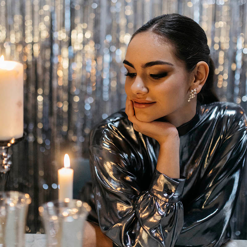 Conquista con elegancia y brillo usando los Pendientes Mysore de ACUS. Su diseño único, con circonitas dispuestas en forma de romboide vertical, añade un toque de distinción y glamour a tu look, perfecto para destacar en cualquier ocasión.