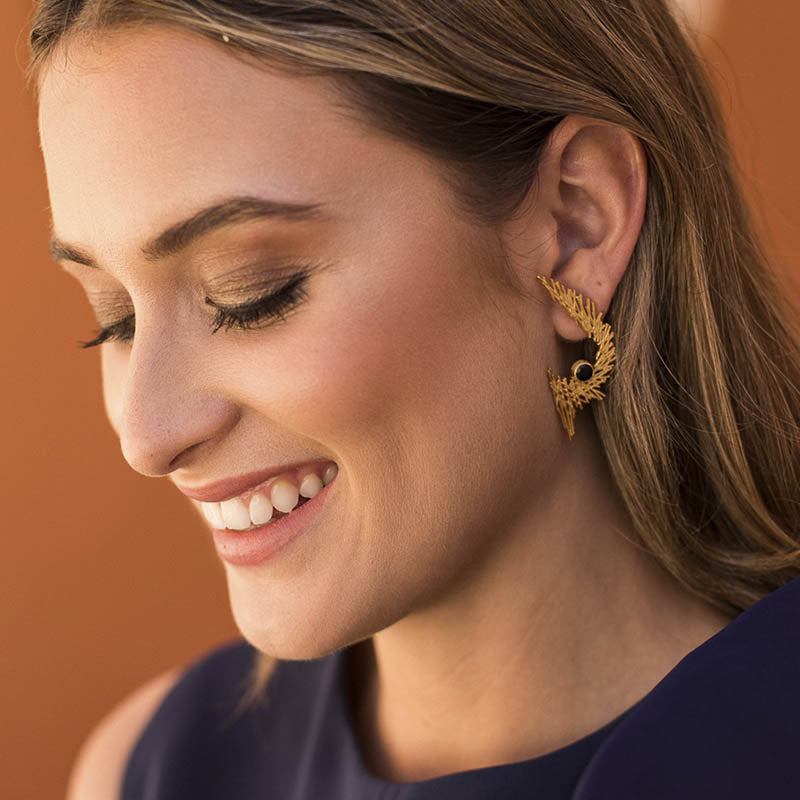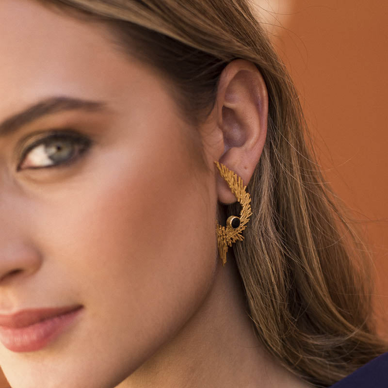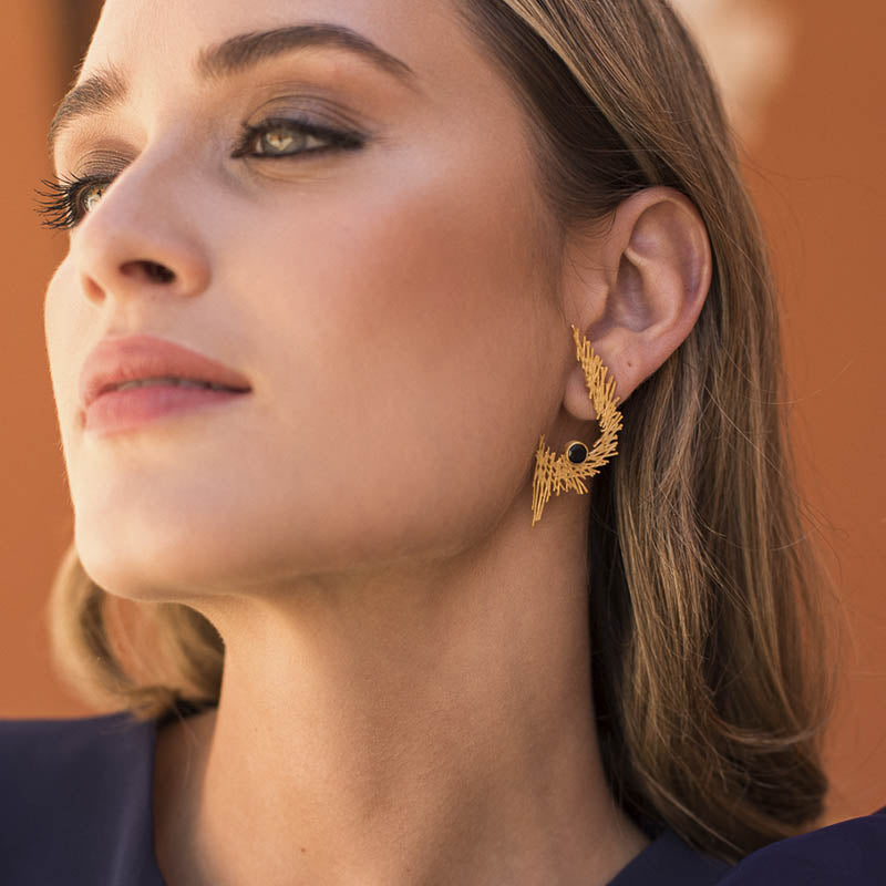 Estos elegantes pendientes están formados por líneas doradas en curva, con un toque de color en su parte inferior. Un diseño sofisticado que añade un toque de modernidad y estilo a tu look, destacando con elegancia en cualquier ocasión.