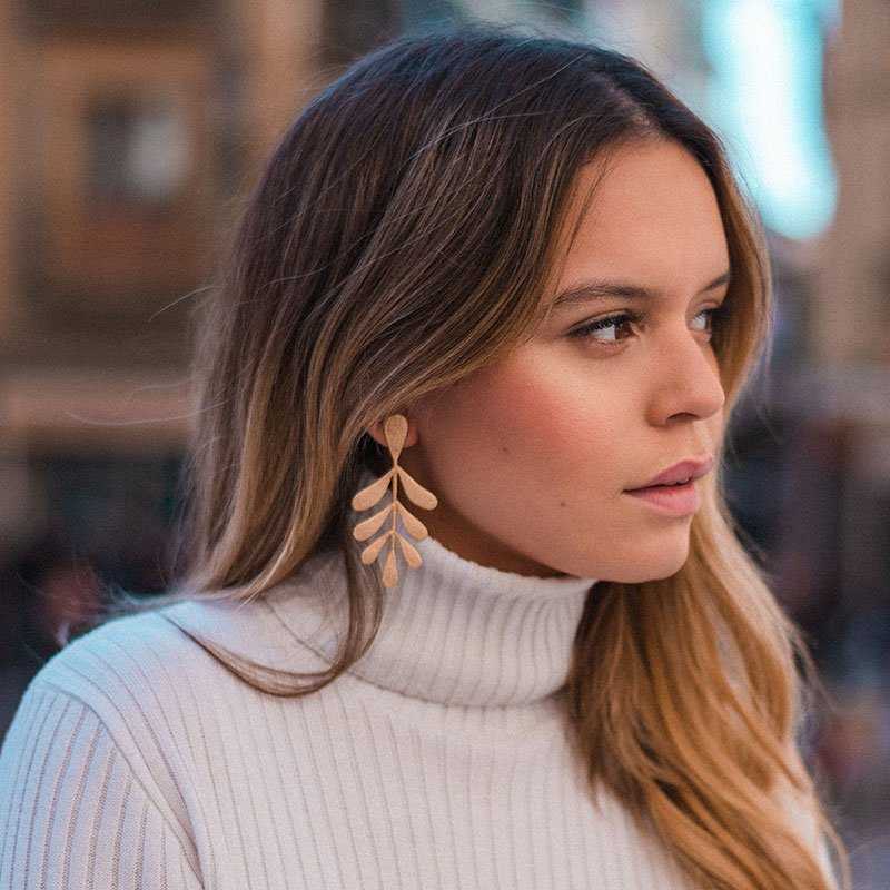 Estos pendientes artesanales capturan la naturaleza en una elegante rama con hojas, con un acabado texturizado que añade un toque distintivo. Una elección única para resaltar tu estilo con encanto y sofisticación.