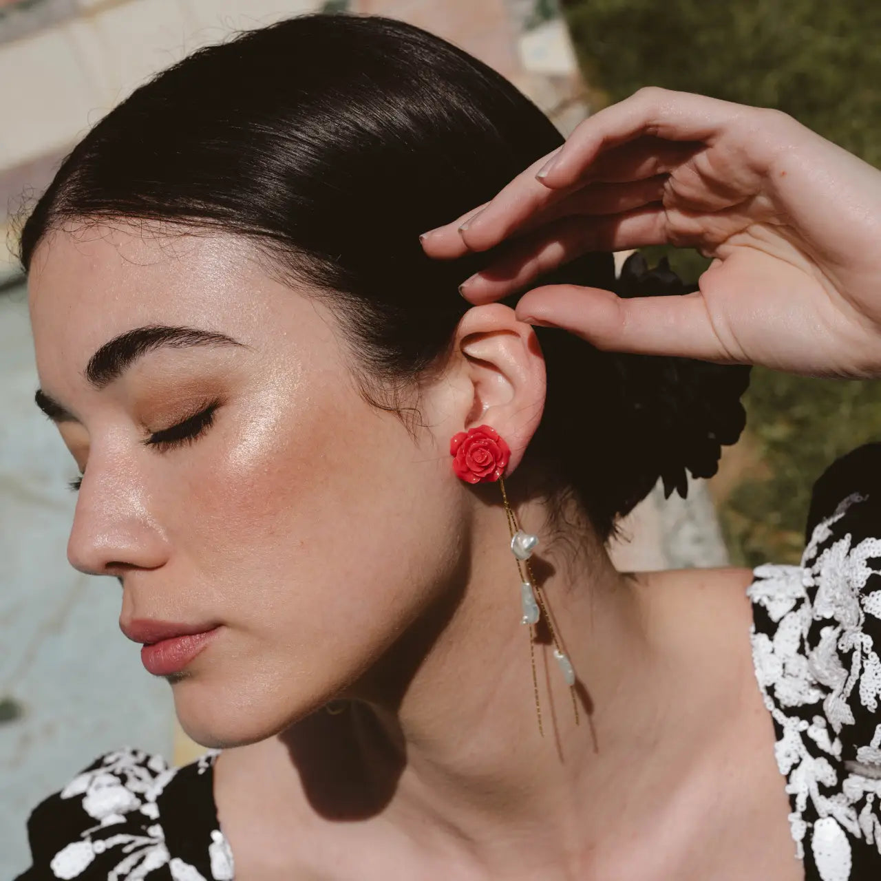 Pendientes Rosalín Desmontable Rojo y Perlas