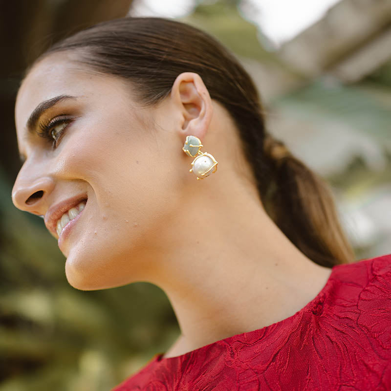 Eleva tu estilo con estos irresistibles pendientes que fusionan una piedra ovalada en la parte superior y otra colgante en la inferior. Una combinación única que destaca por su elegancia. ¡No pierdas la oportunidad de añadir esta joya a tu colección y brillar con distinción en cada ocasión!