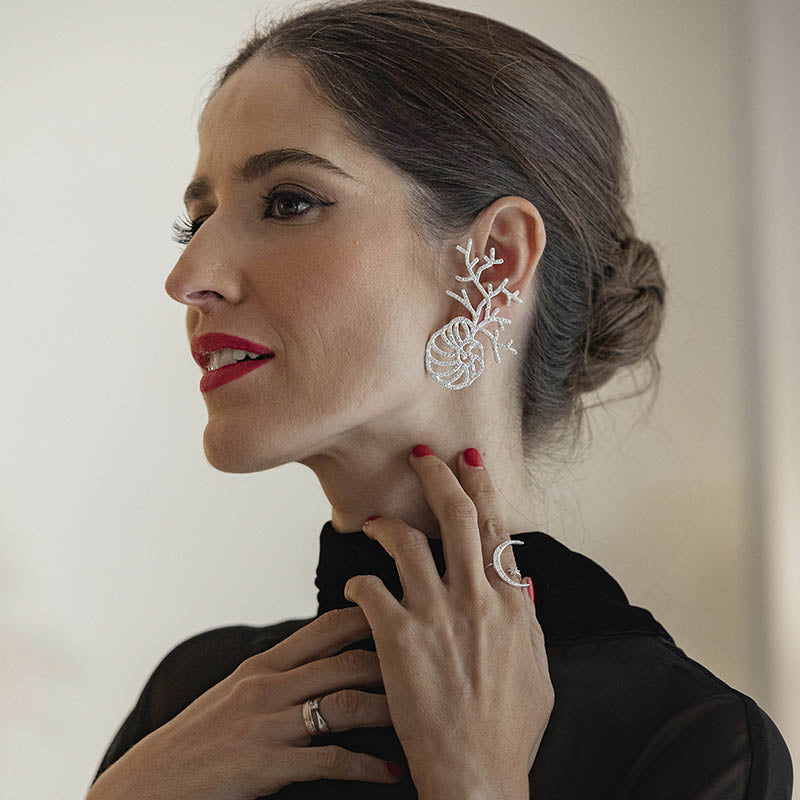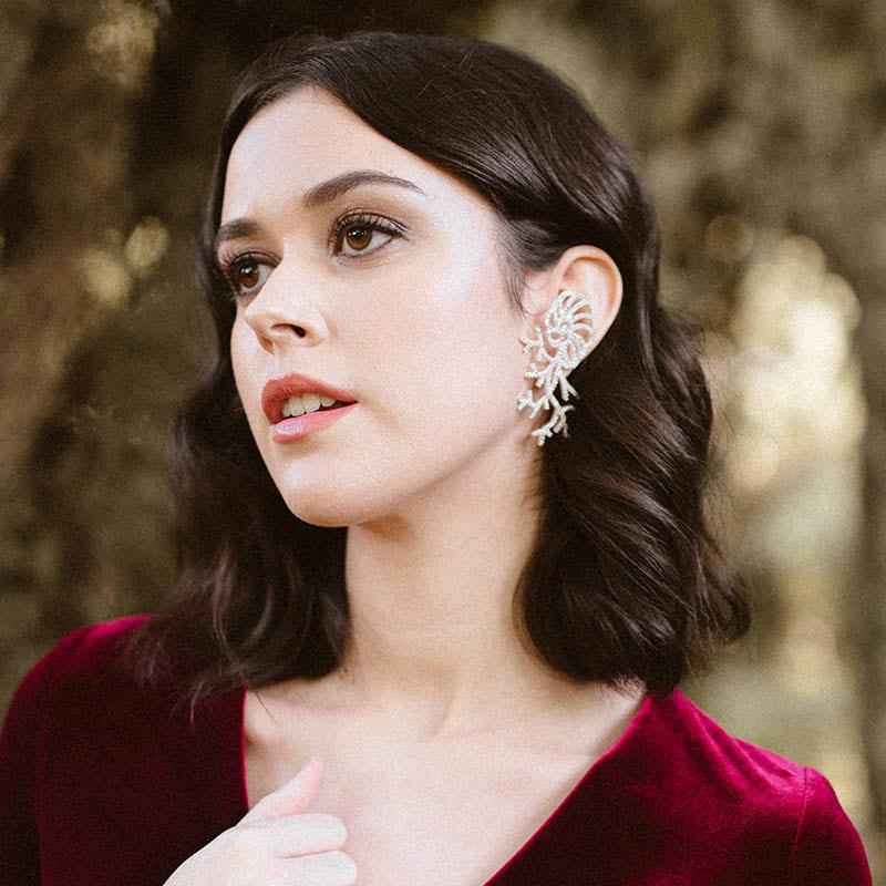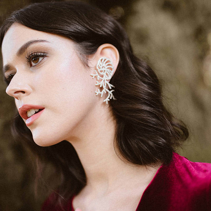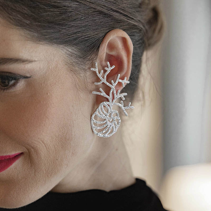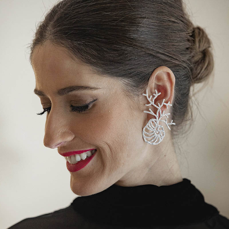 Su forma única y elegante presenta una caracola con ramas salientes adornadas con circonitas, añadiendo un toque de brillo y estilo a tu look.